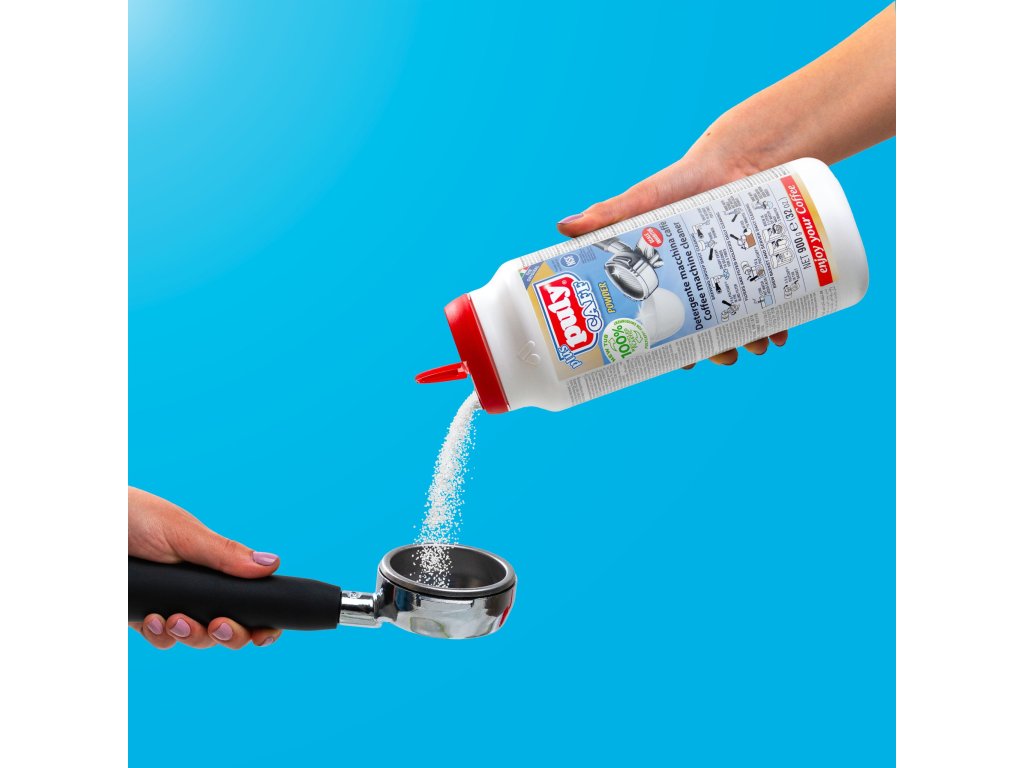 Čisticí prostředek - práškový, pro čištění pákových kávovarů, filtrů a kávového příslušenství, hmotnost 900 g. Odstraňuje kávové usazeniny.