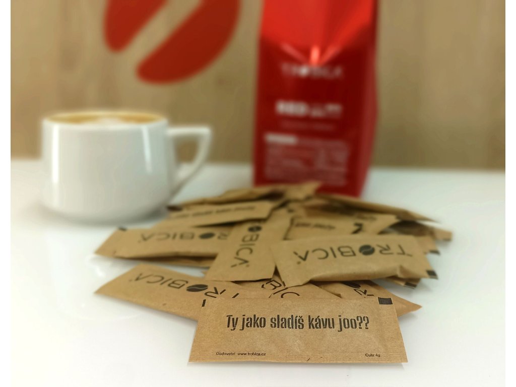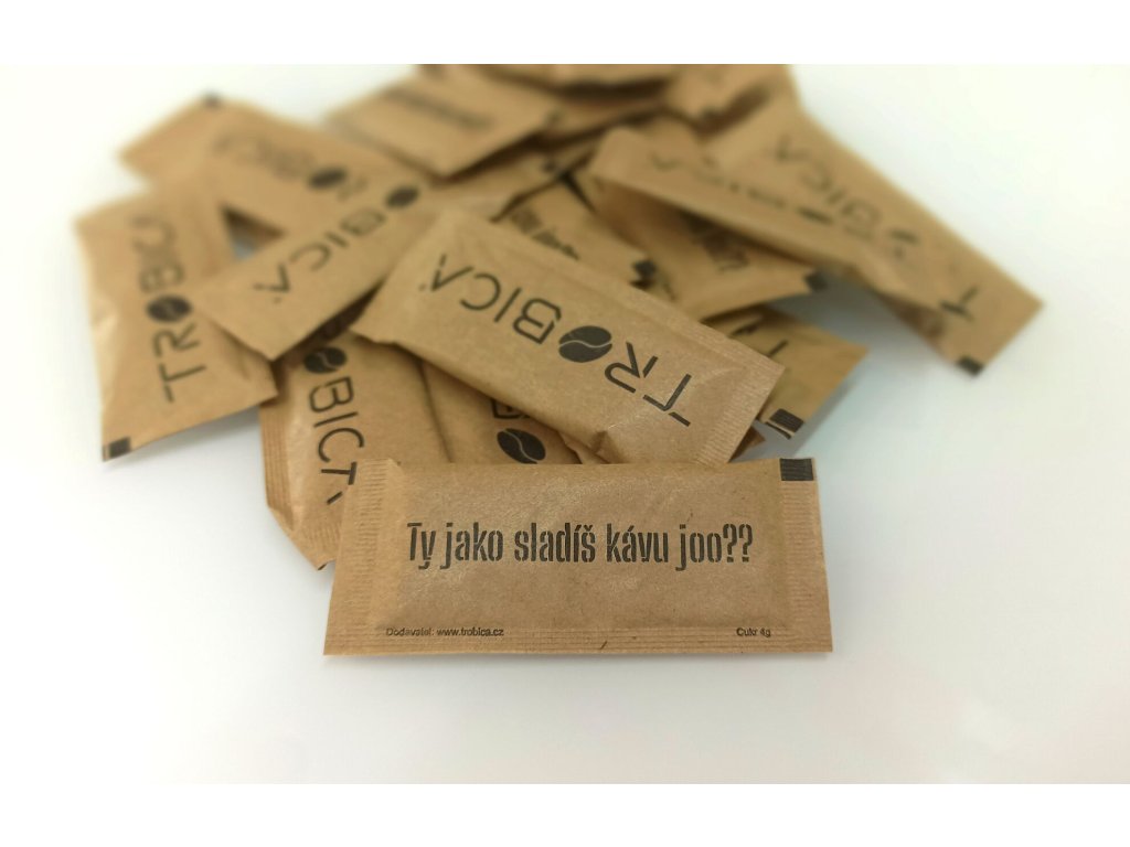 V balení 1000 ks. Původ cukru je z Mauricia, Demeraru.