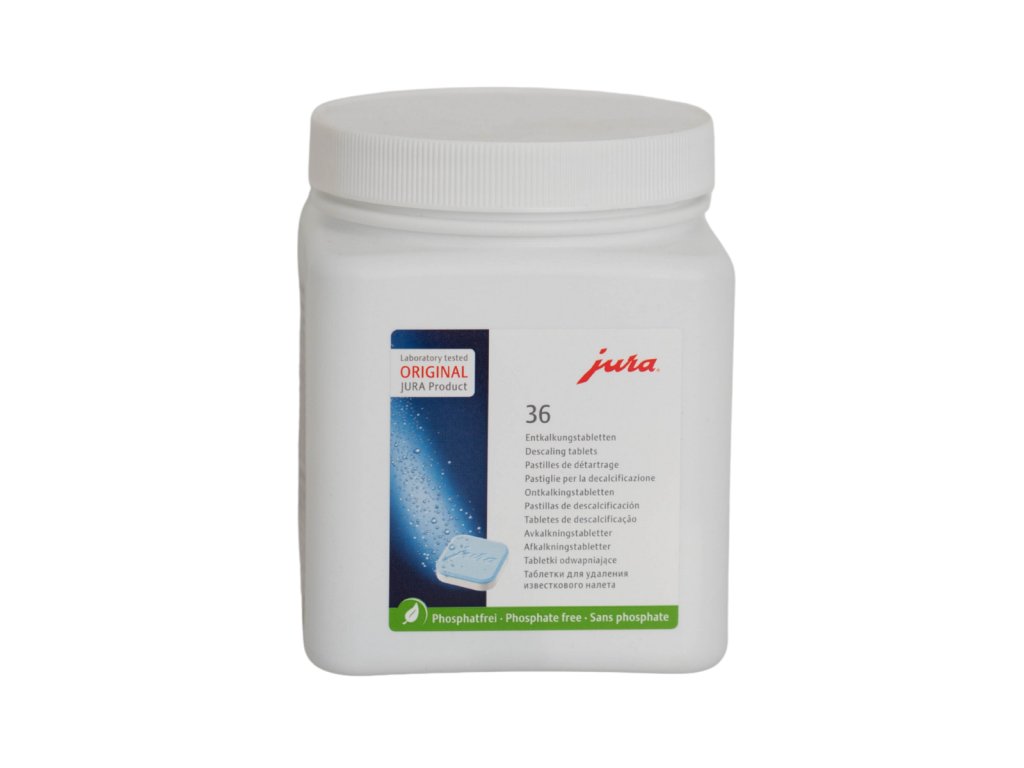 Odvápňovací tablety JURA 36 ks zajišťují účinné a bezpečné odstranění vodního kamene z plně automatických kávovarů JURA i dalších domácích spotřebičů. Speciální dvoufázová receptura nejen rozpouští nánosy vodního kamene, ale zároveň chrání vnitřní okruh kávovaru před jeho rychlým opětovným vznikem.