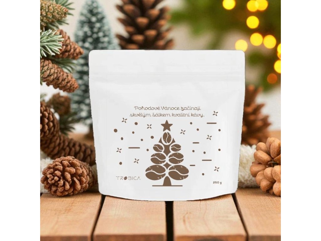 Tahle limitka stojí na čokoládovém základu z Brazílie, který doplňuje květinová Etiopie, karamelová Guatemala a ovocná Rwanda. Výsledek je vyvážený, sváteční a snadno pitelný v espresso i filtru.